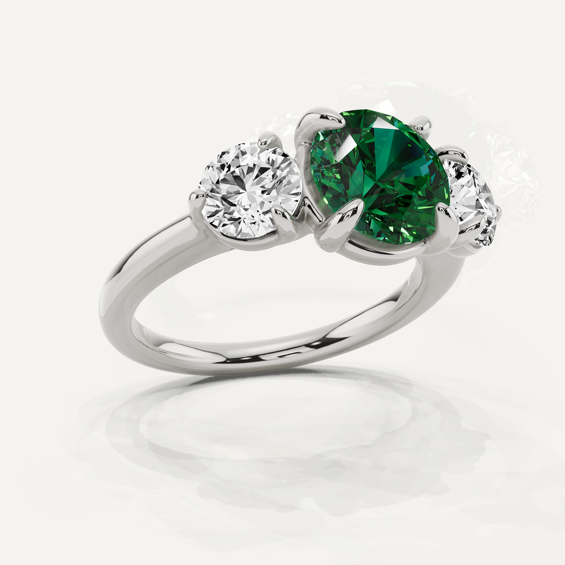 3 1/5 ctw Round Created Emerald Three Stone Engagement Ring