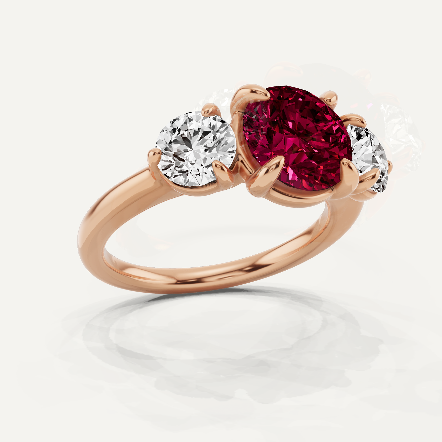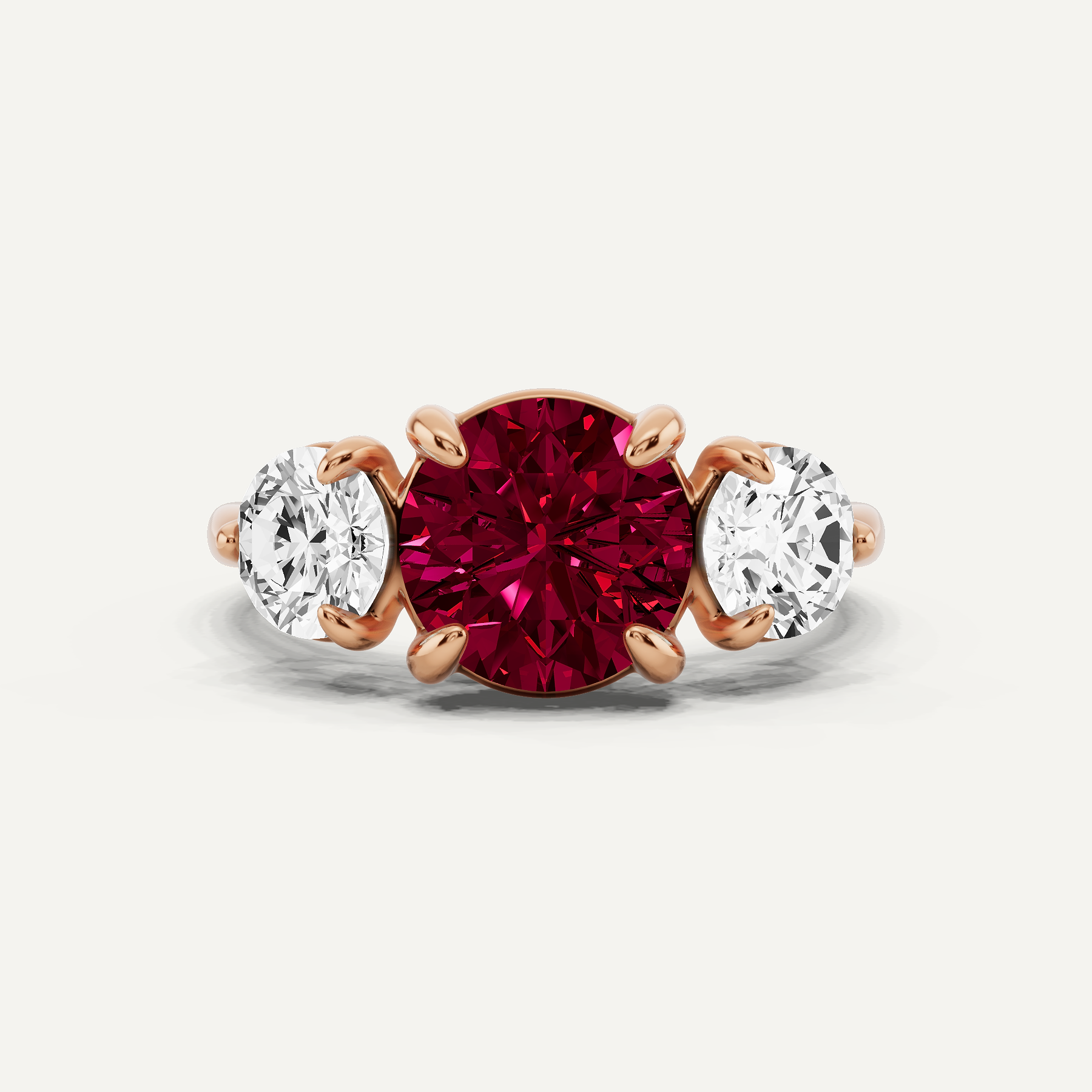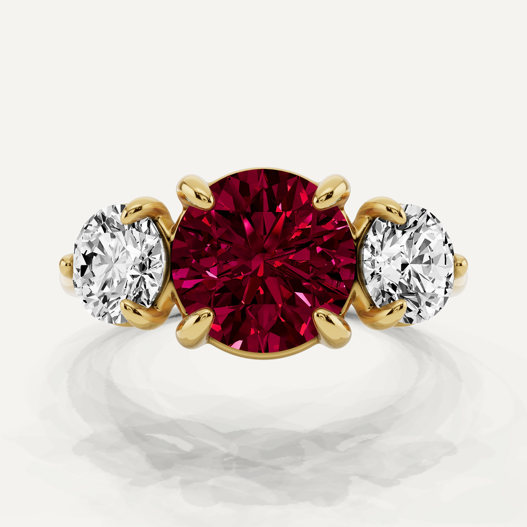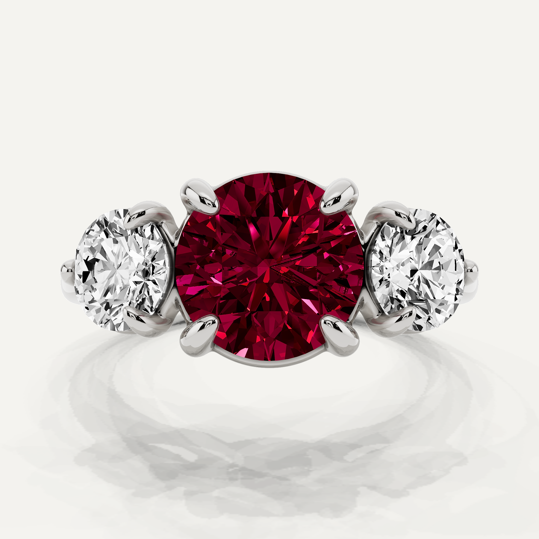 3 1/5 ctw Round Created Ruby Three Stone Engagement Ring
