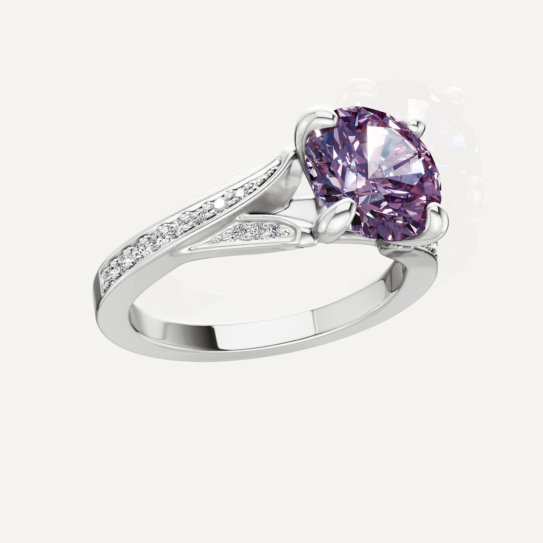 3 1/6 ctw Round Created Alexandrite Contemporary Split Shank Side Stone Engagement Ring