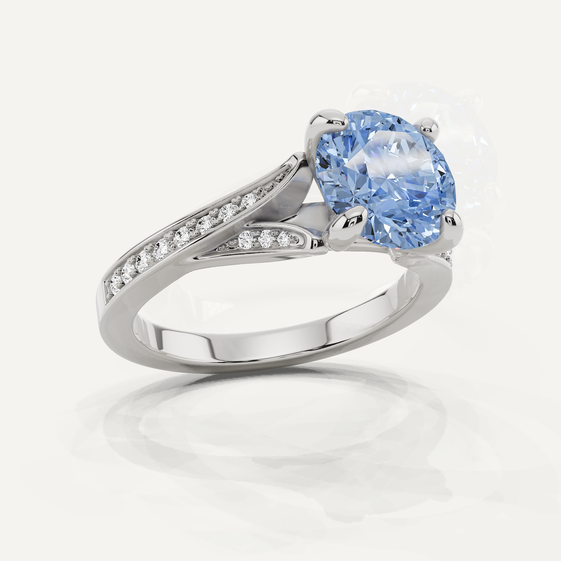 3 1/6 ctw Round Created Aquamarine Contemporary Split Shank Side Stone Engagement Ring