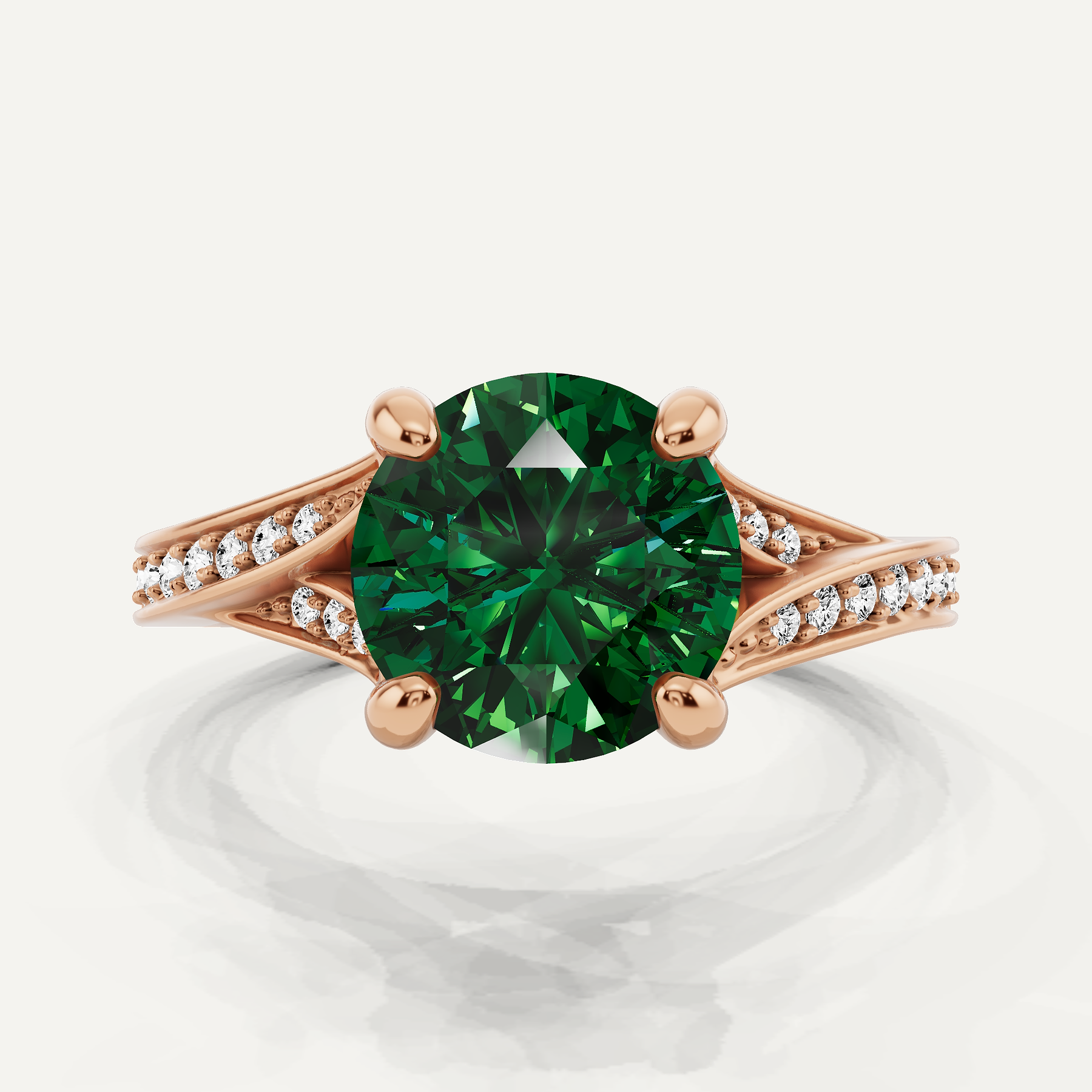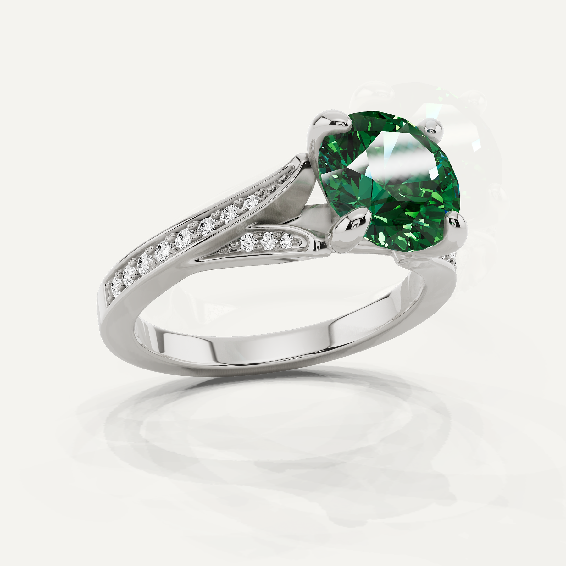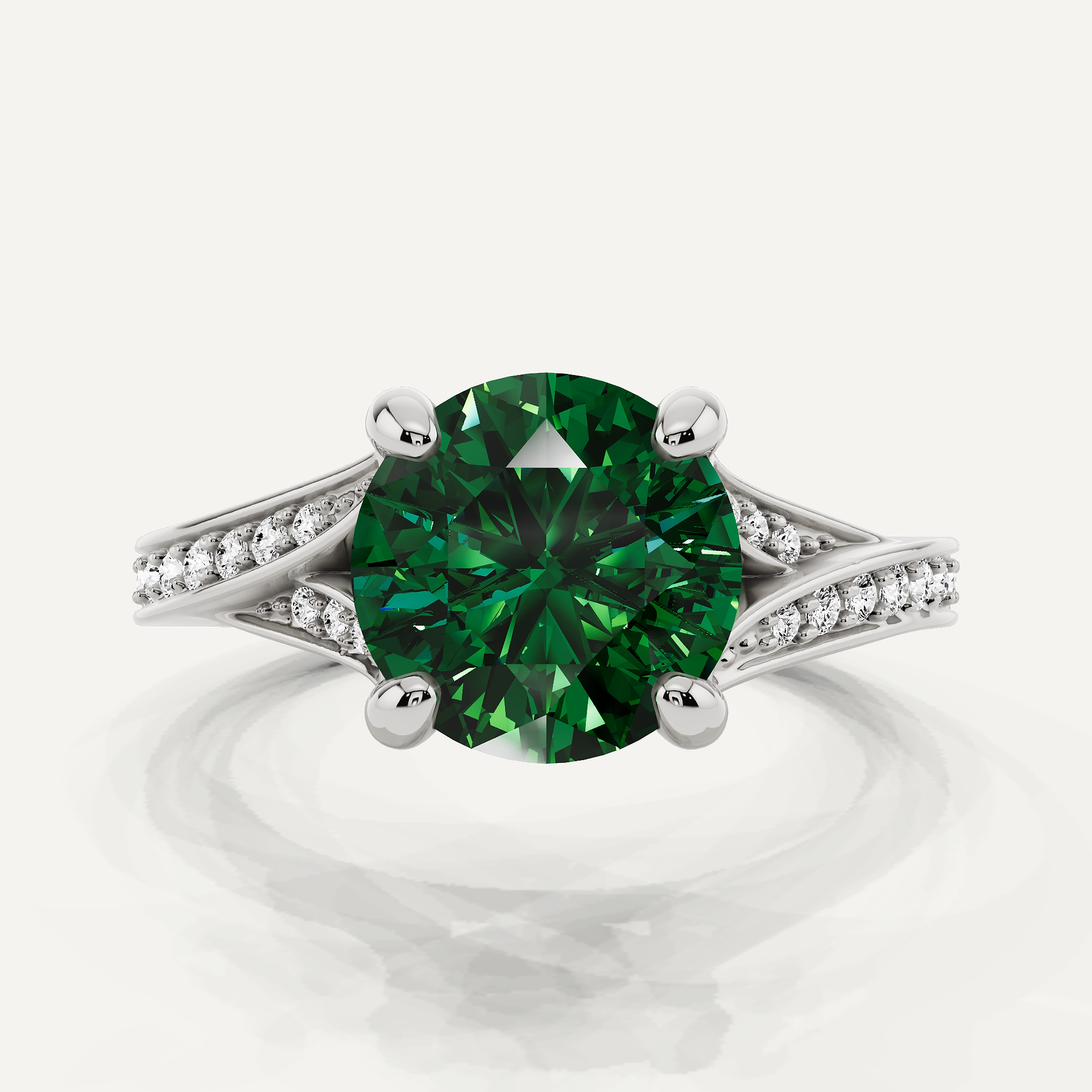 3 1/6 ctw Round Created Emerald Contemporary Split Shank Side Stone Engagement Ring
