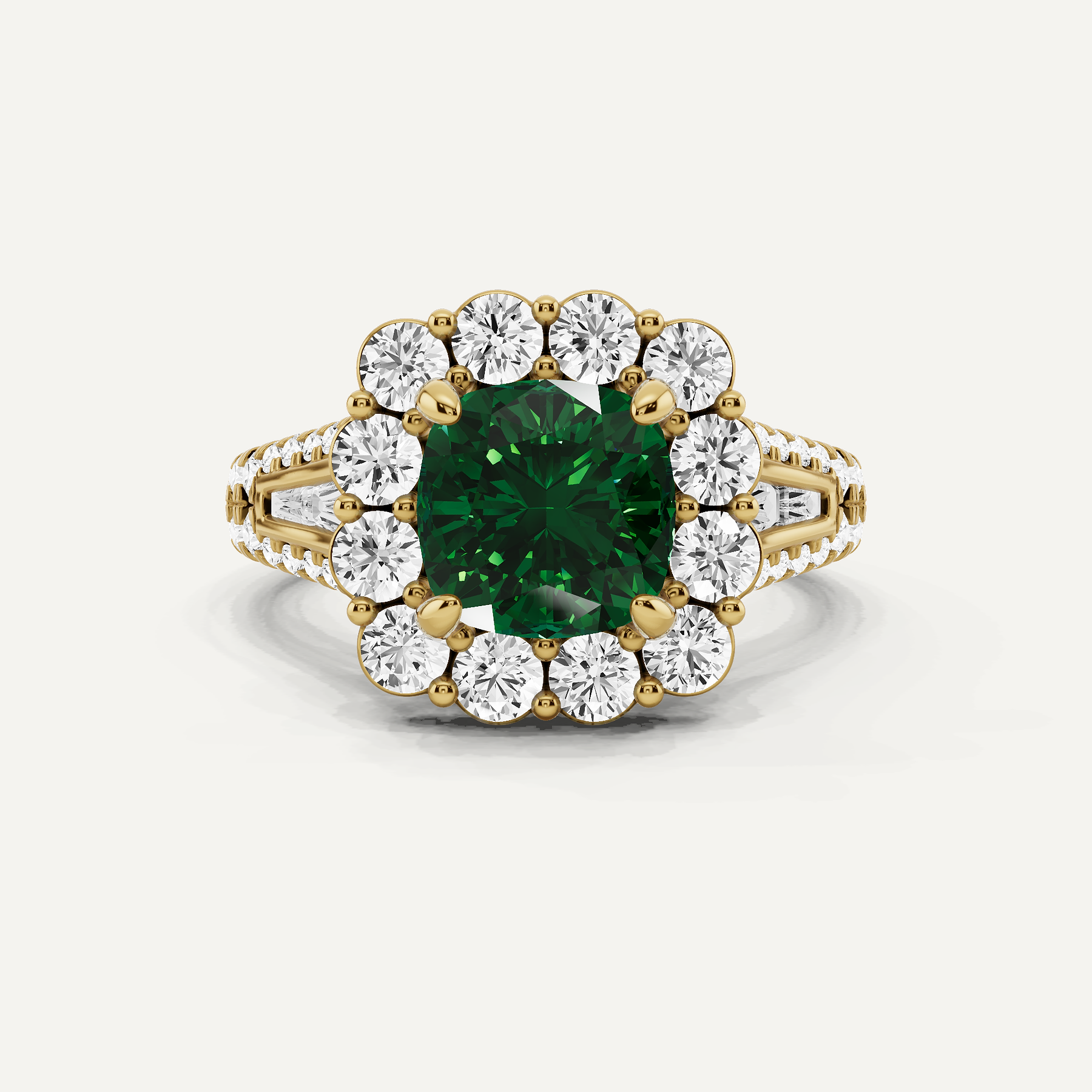 3 2/5 ctw Cushion Created Emerald Large Halo Engagement Ring