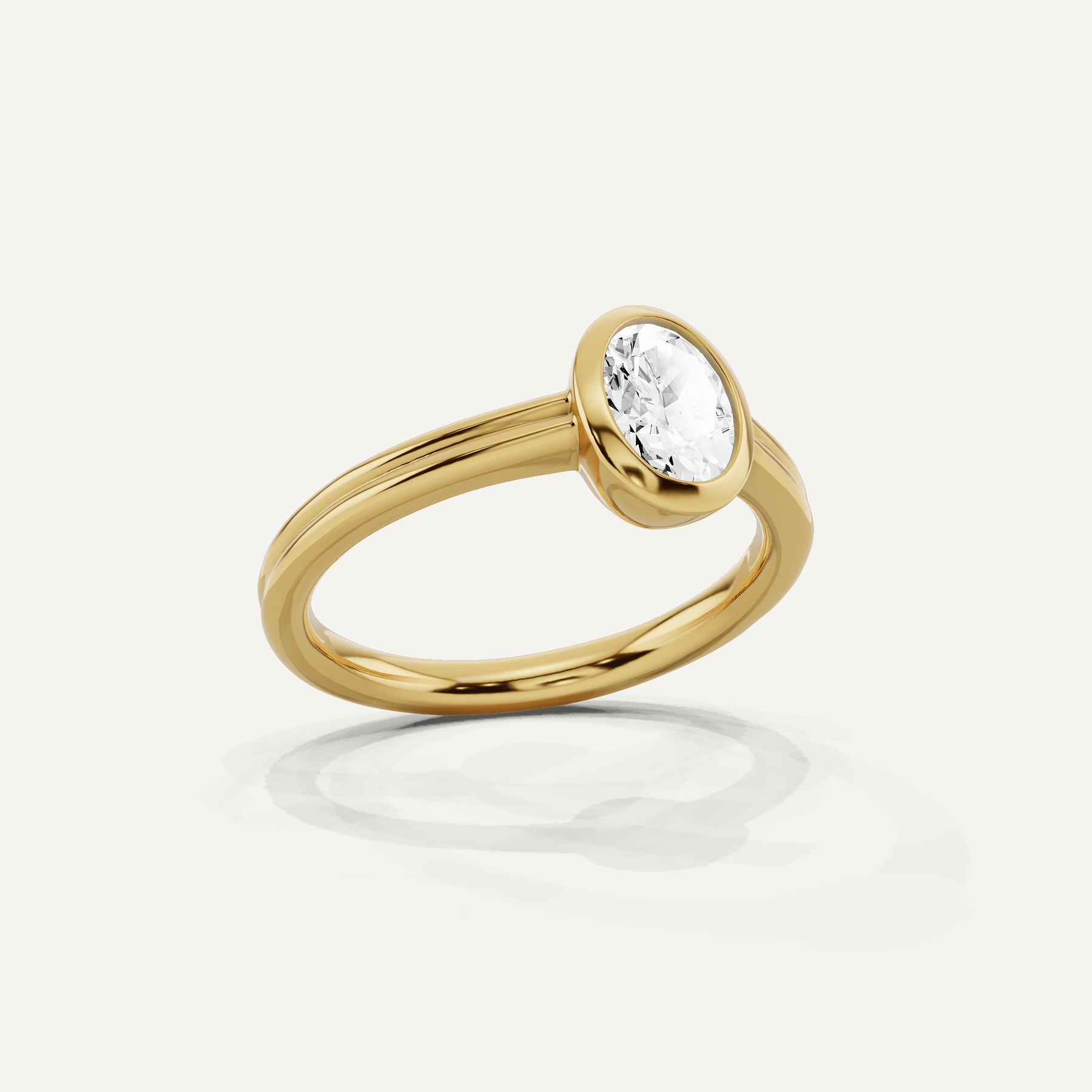 3/4 ctw Oval Diamond Bezel Set Double Shank Solitaire Engagement Ring