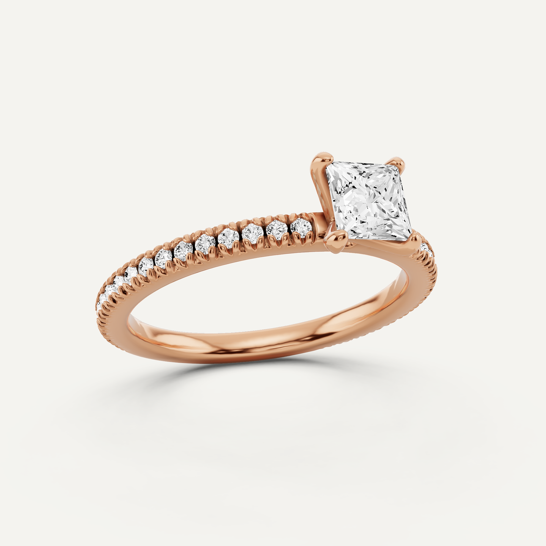 3/4 ctw Princess Diamond Pave Set Side Stone Engagement Ring