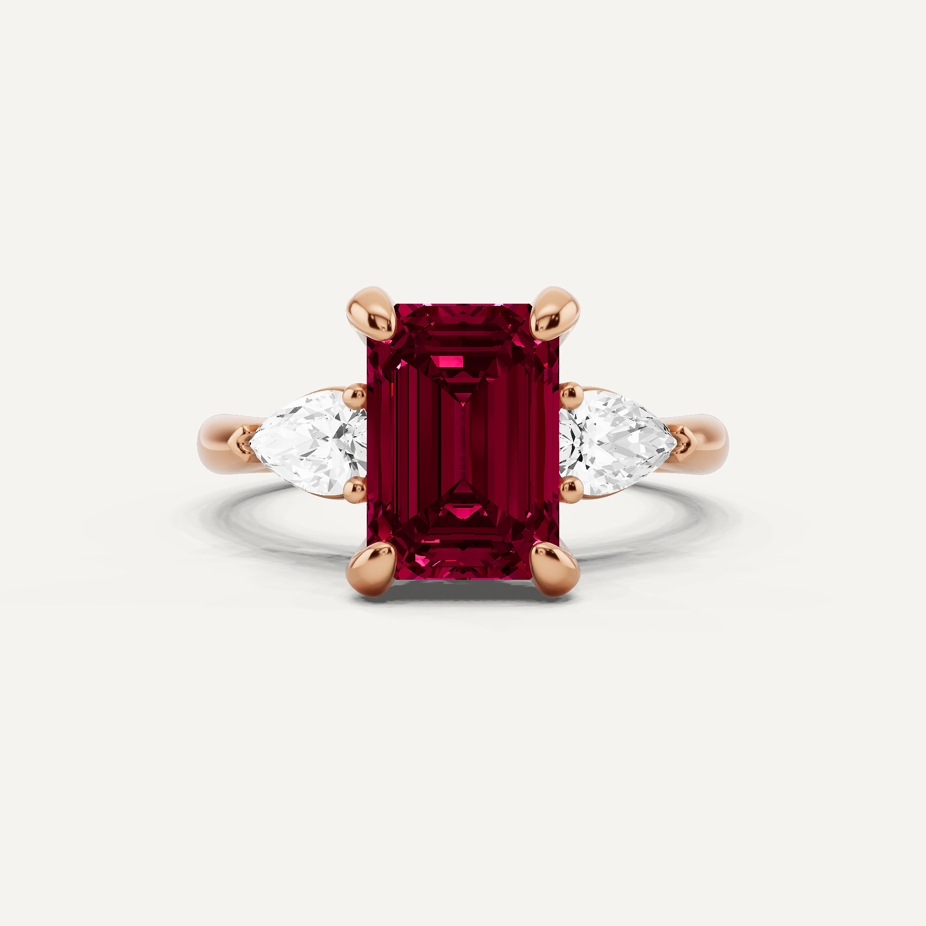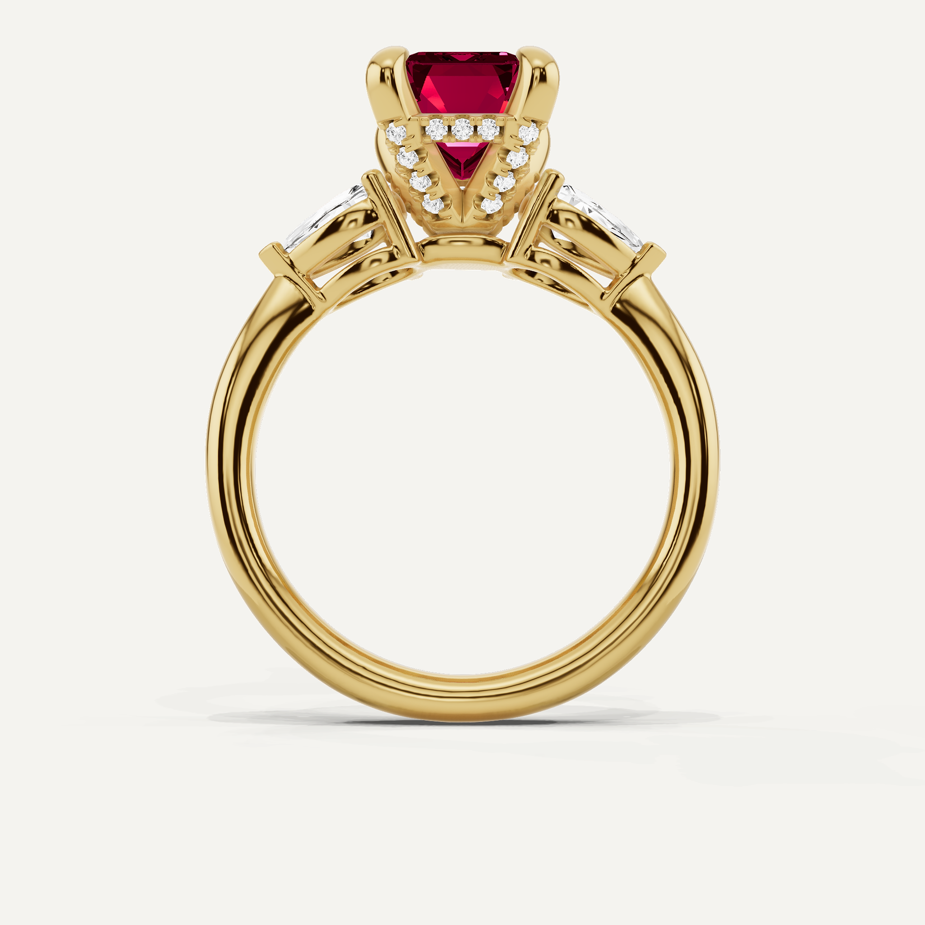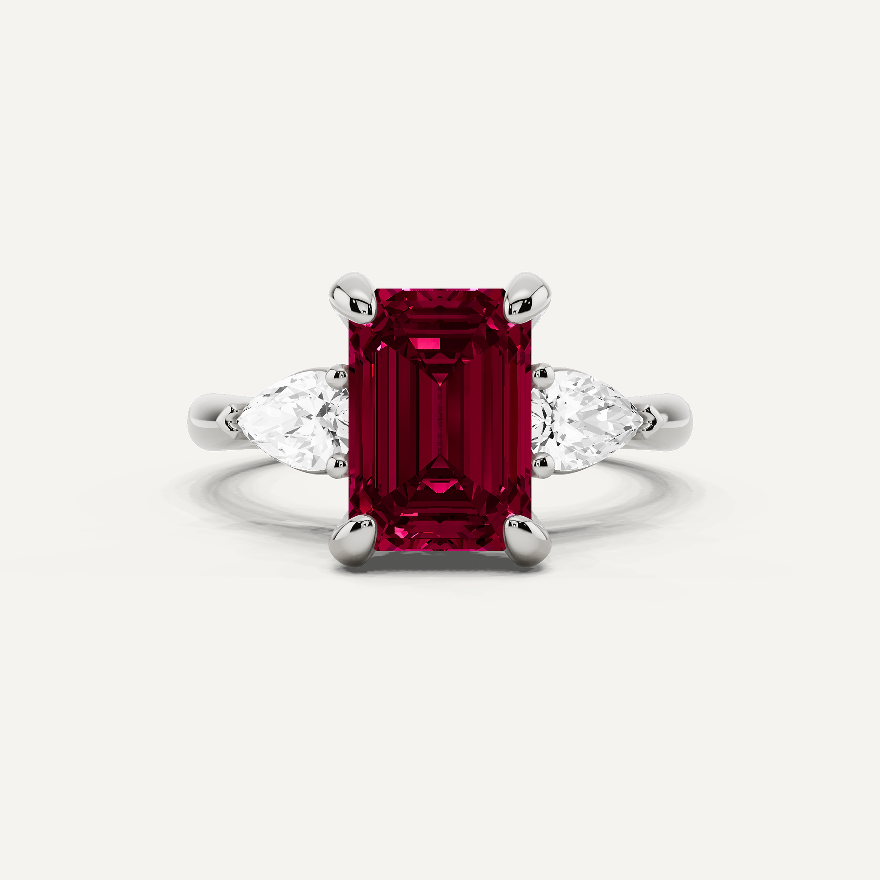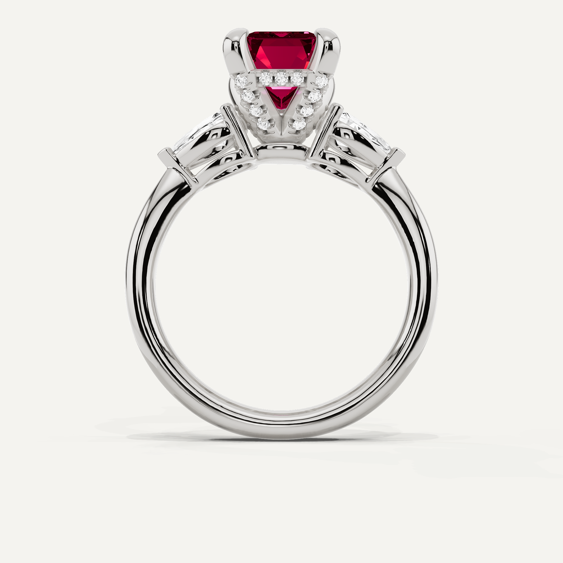 3 5/8 ctw Emerald Created Ruby Hidden Halo Engagement Ring with Pear Side Stones