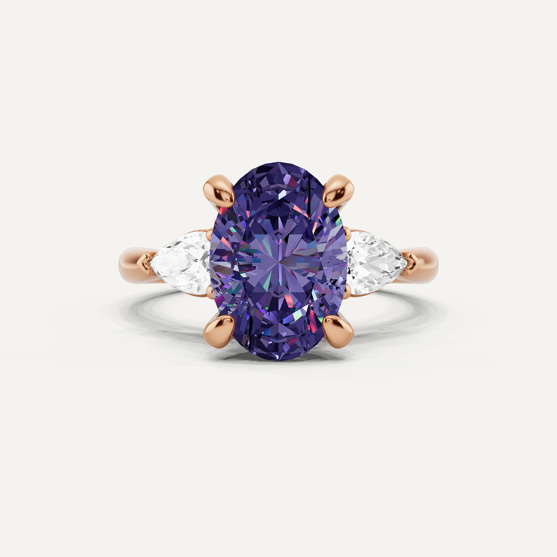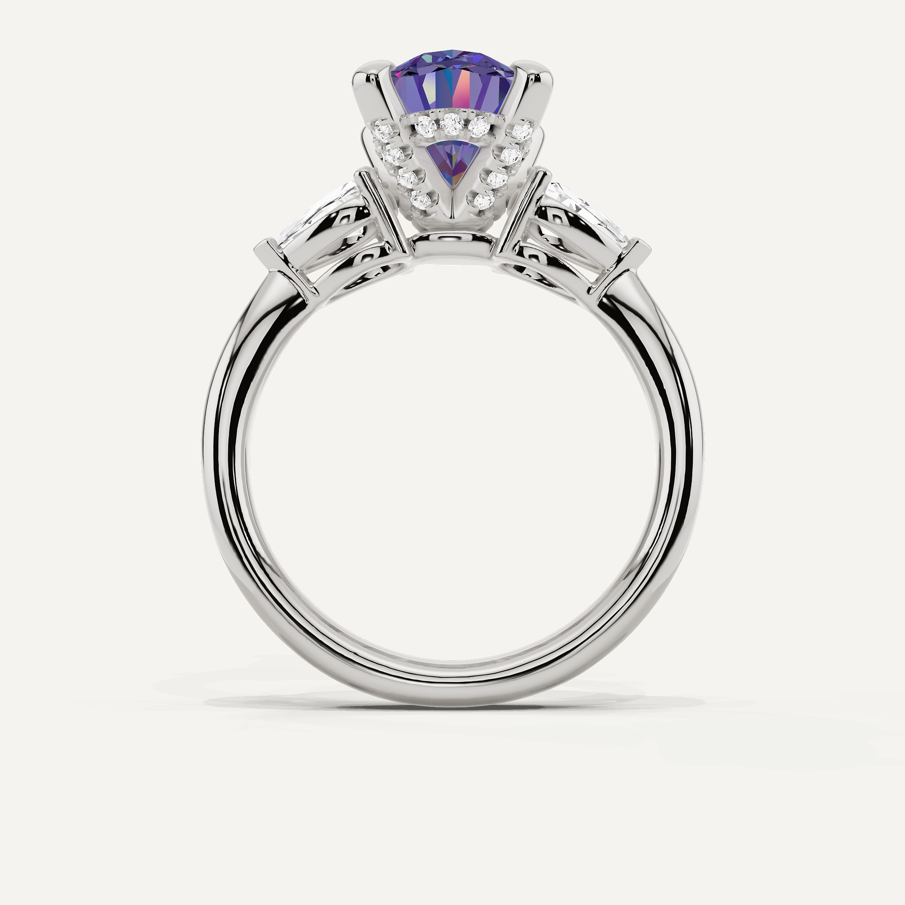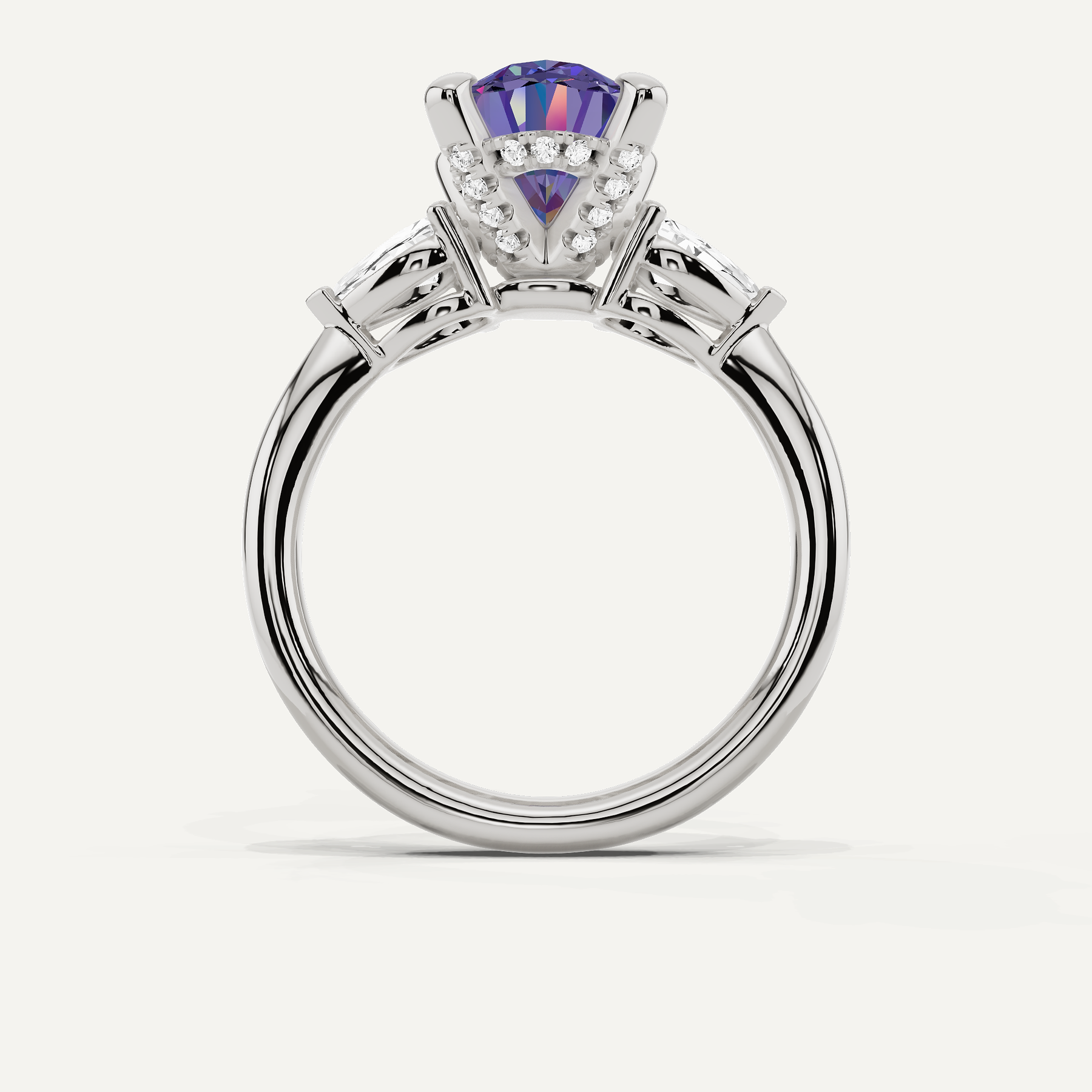 3 5/8 ctw Oval Created Alexandrite Hidden Halo Engagement Ring with Pear Side Stones