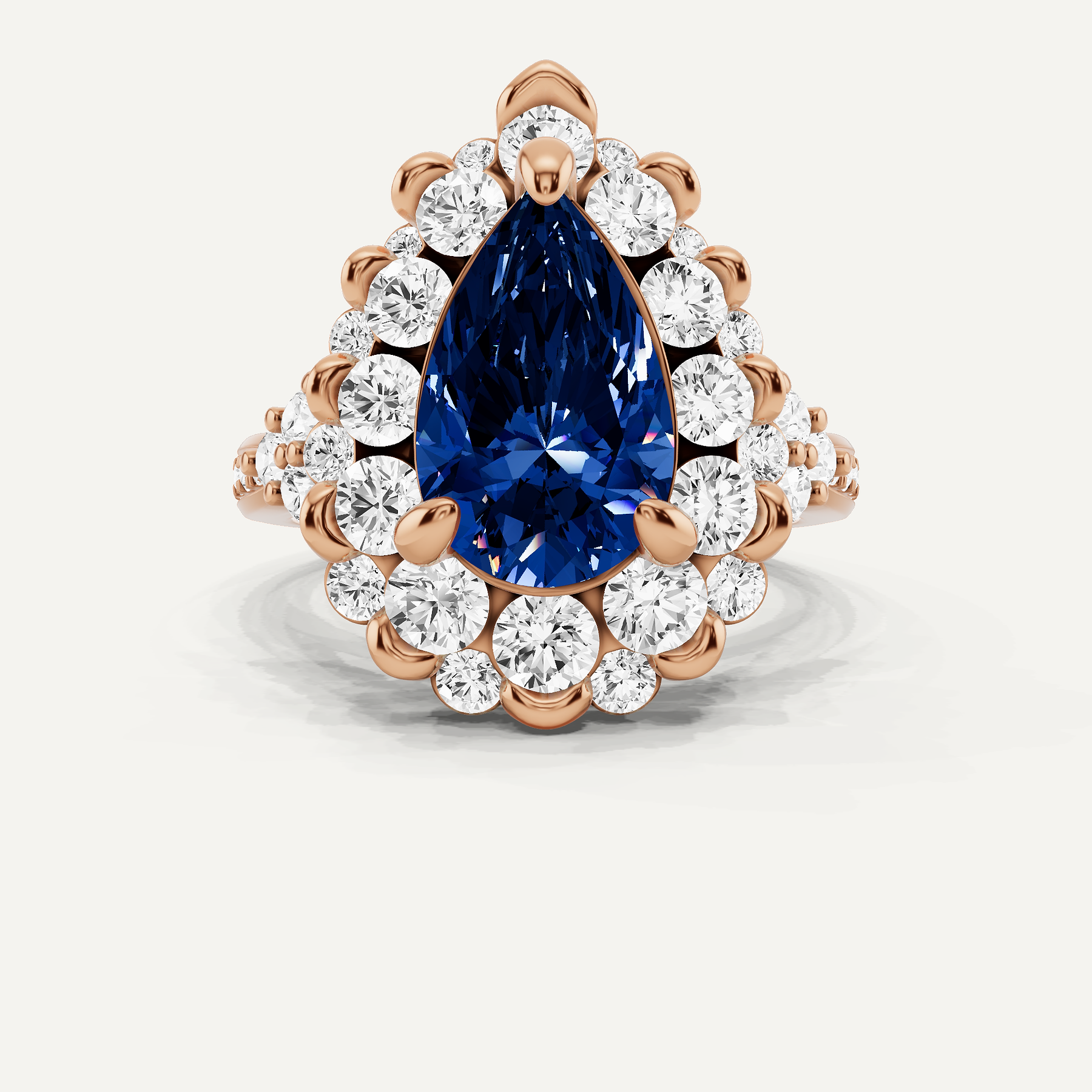 3 7/8 ctw Pear Created Sapphaire Framed Halo Engagement Ring