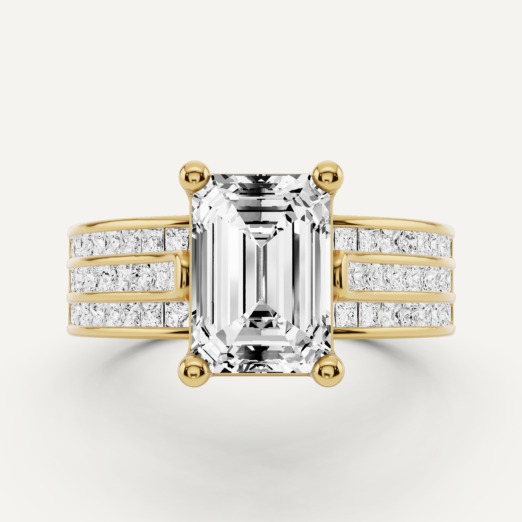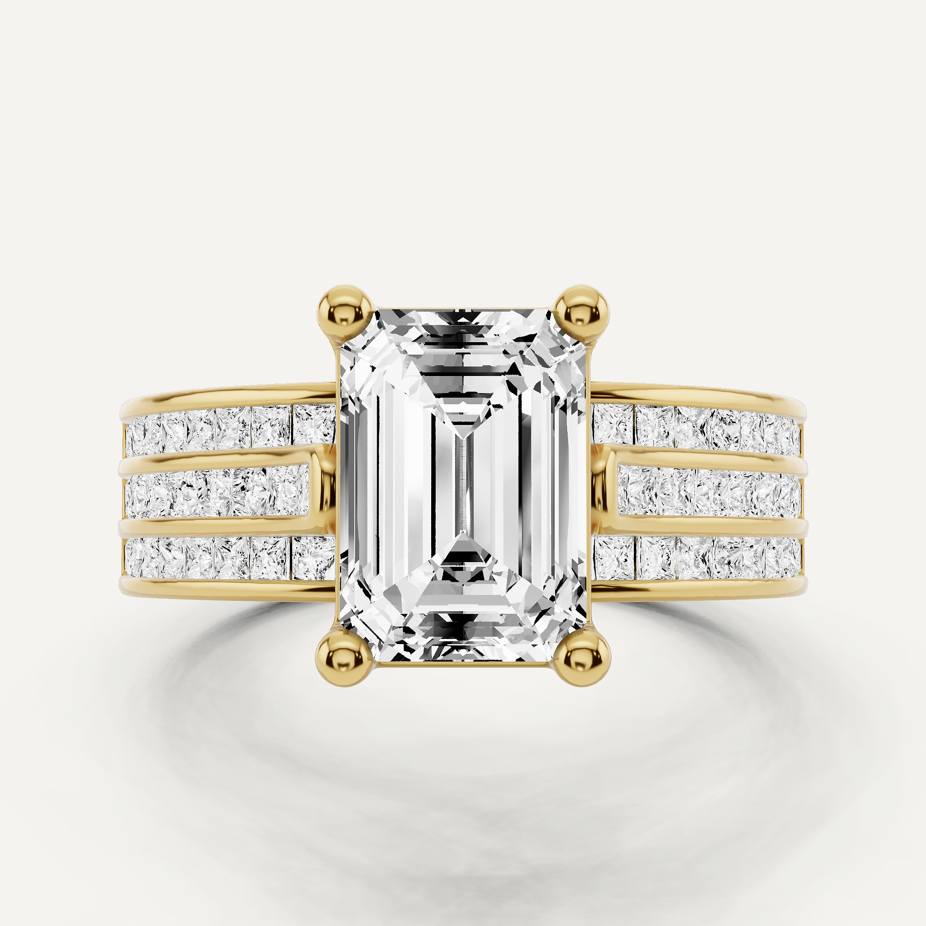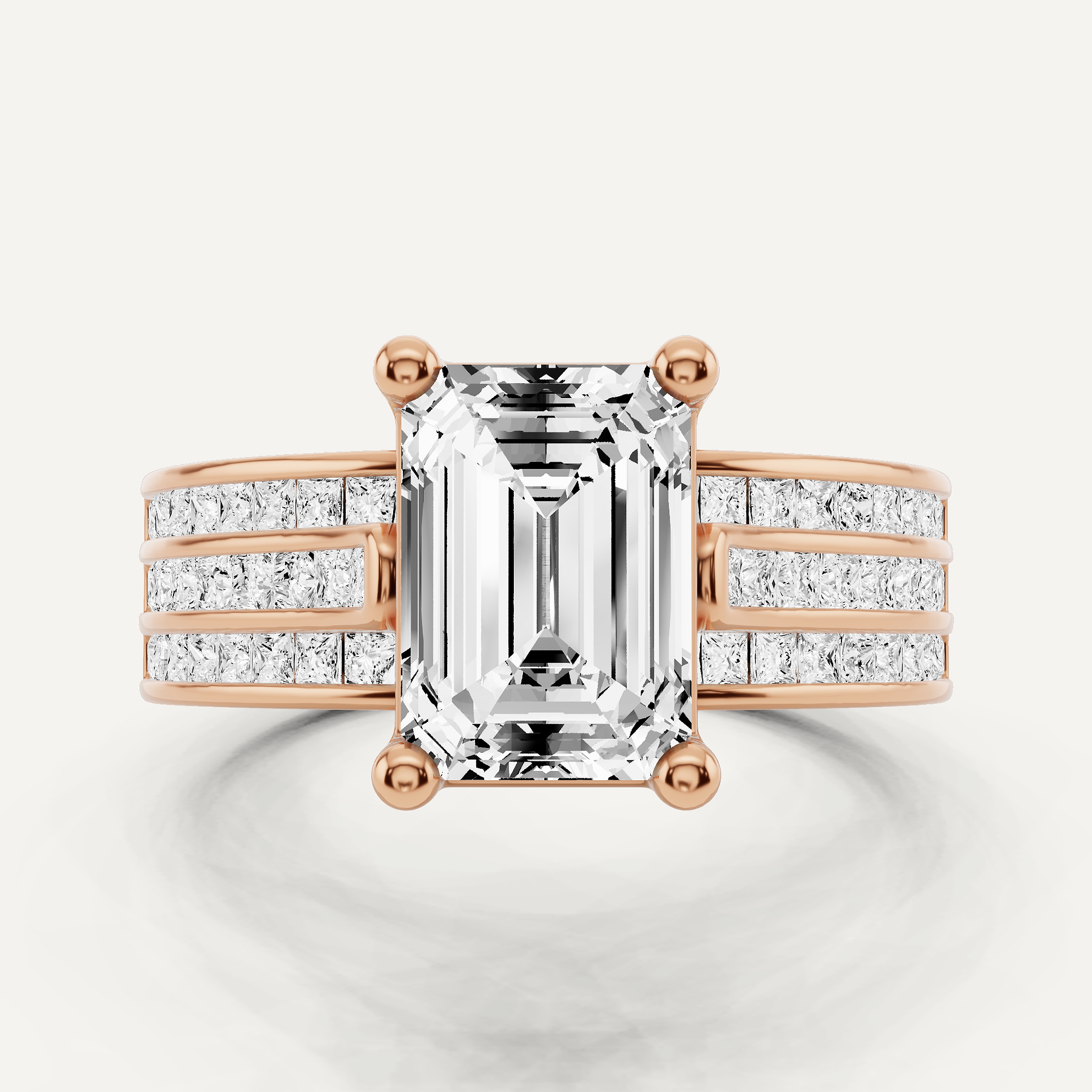 3 ctw Emerald Diamond Double Band Side Stone Engagement Ring