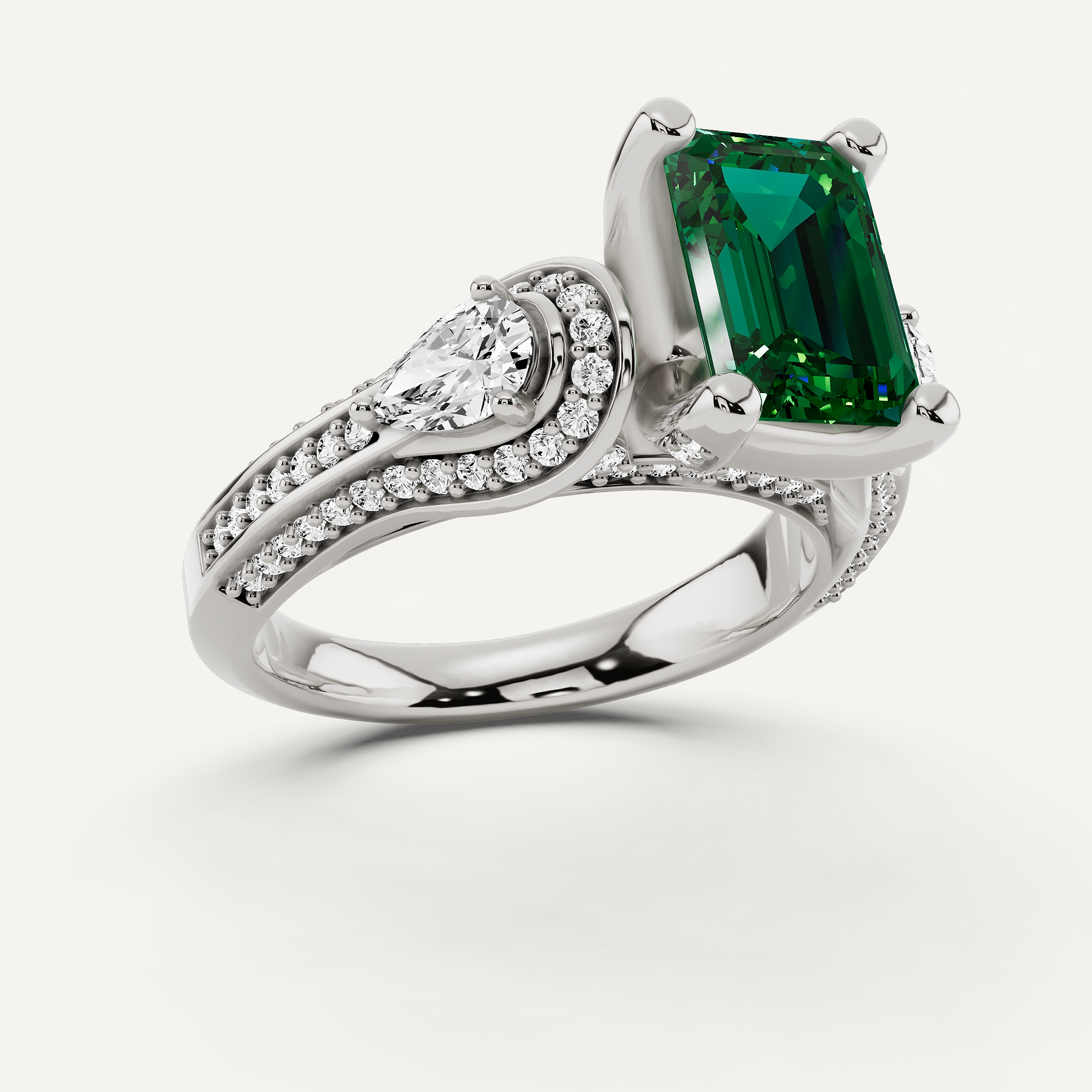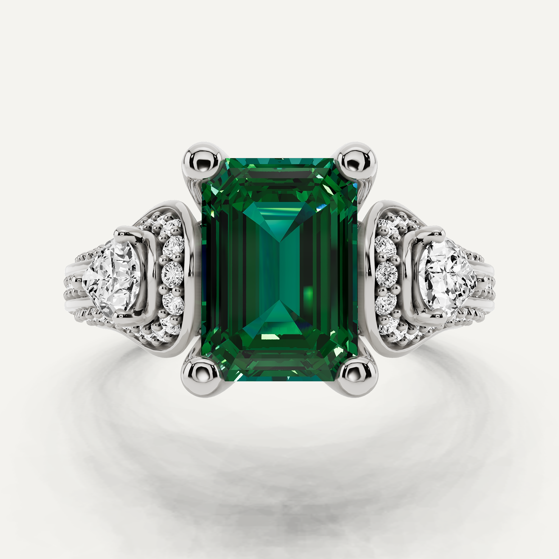3 ctw Emerald Emerald Vinatge Inspired Three Stone Engagement Ring