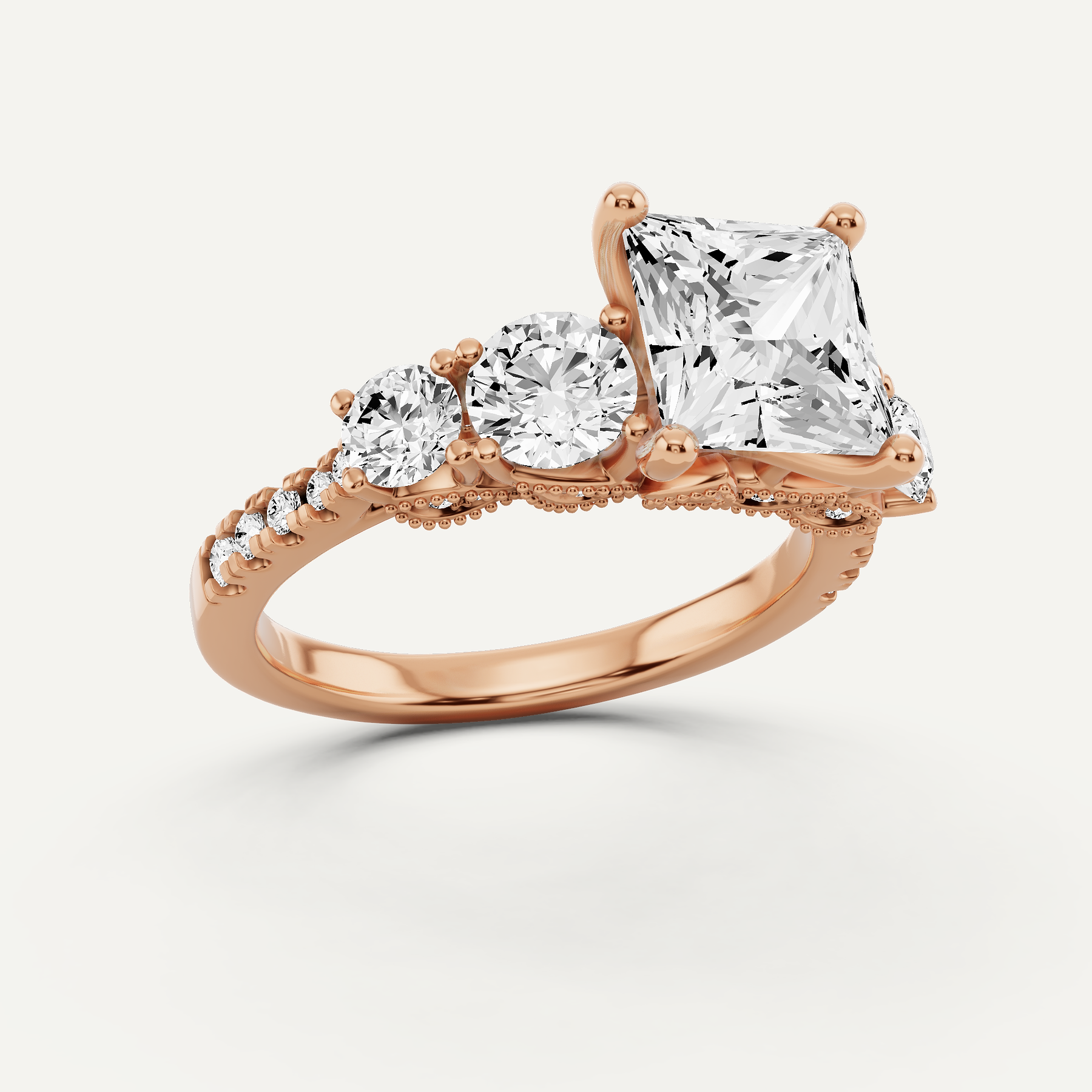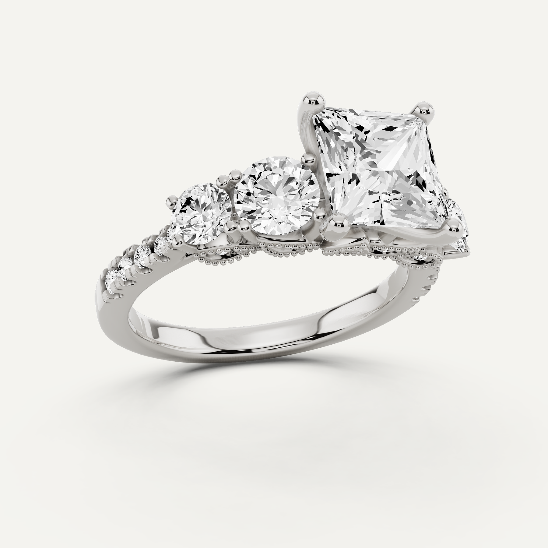 4 1/4 ctw Princess Diamond Graduated Side Stone Engagement Ring
