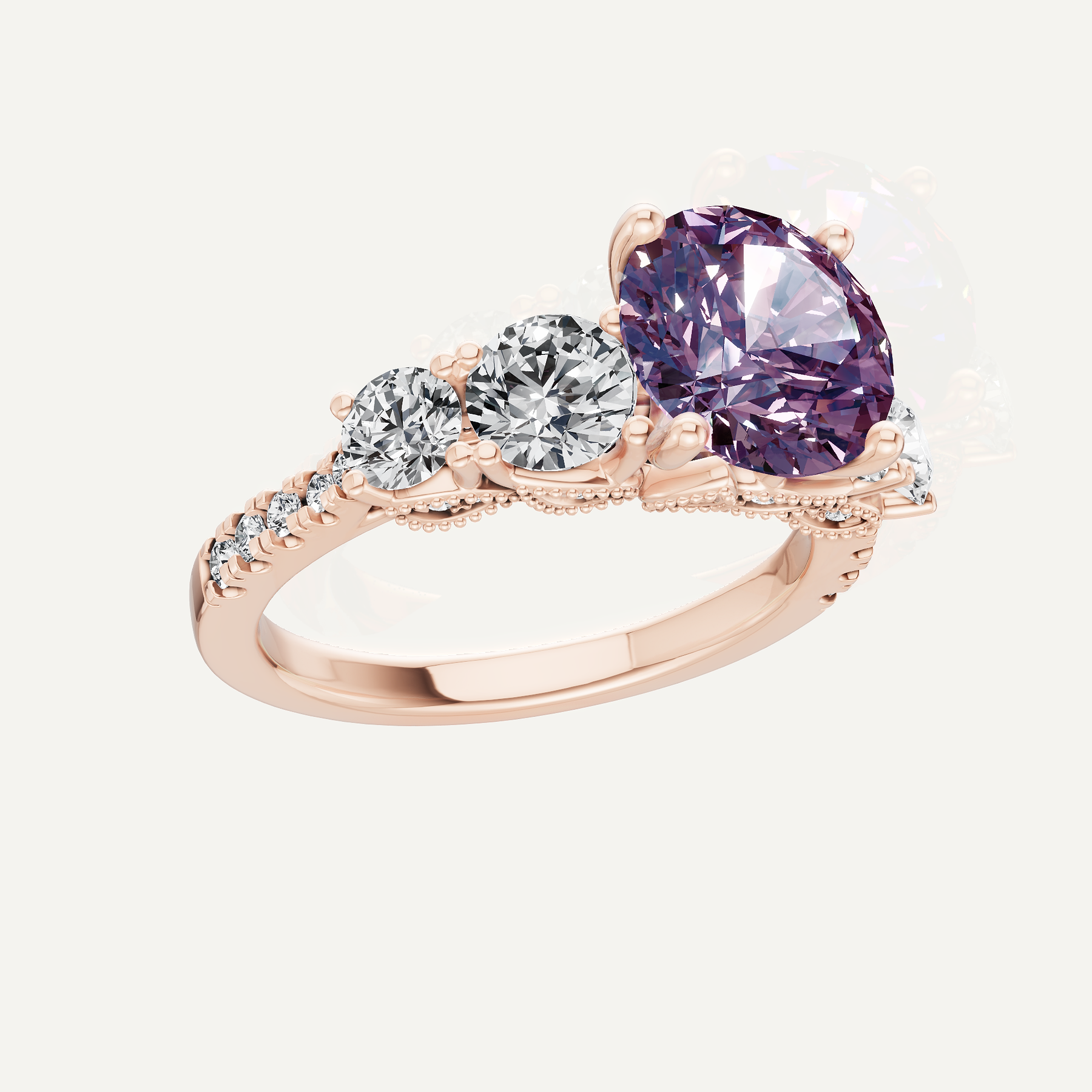 4 1/4 ctw Round Created Alexandrite Graduated Side Stone Engagement Ring