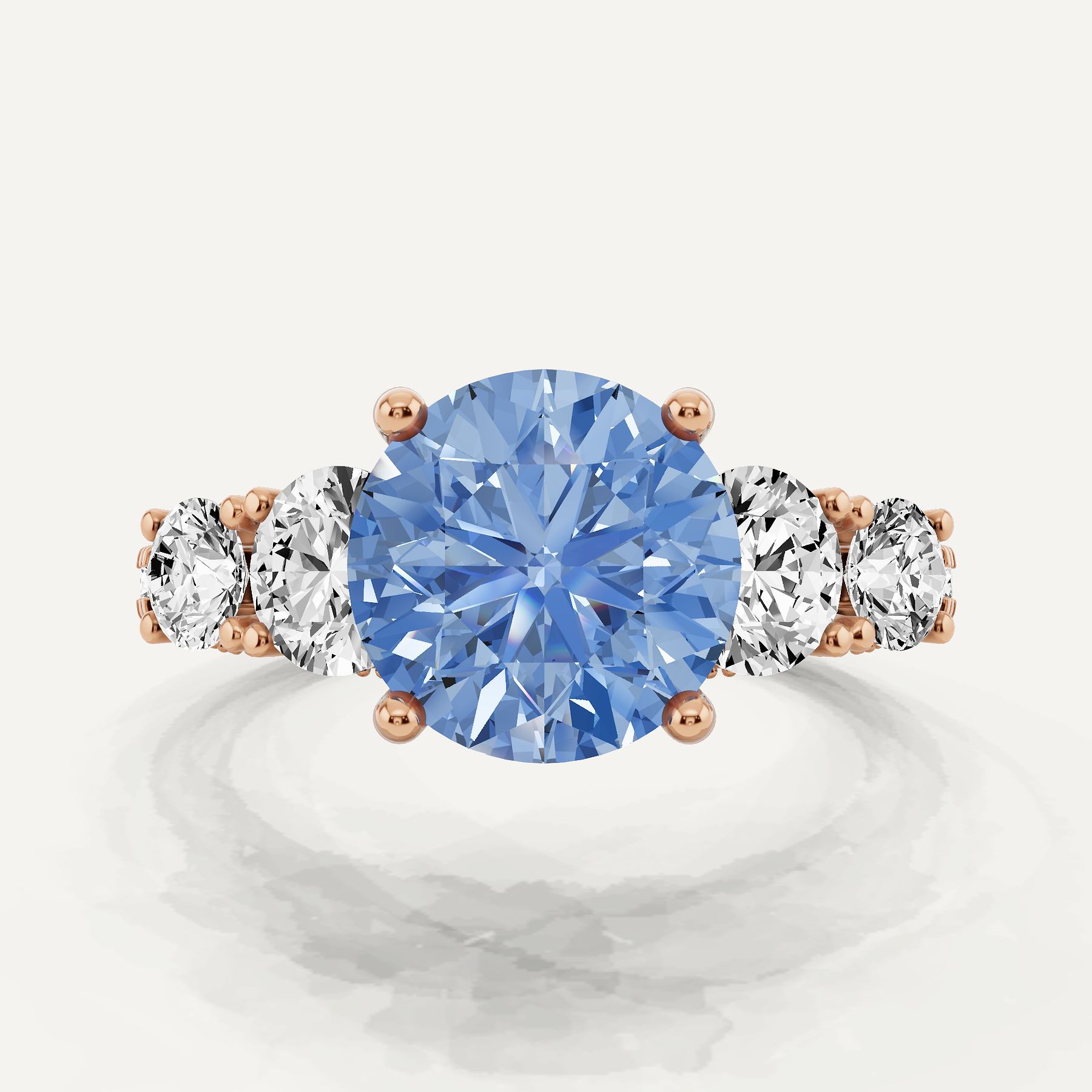 4 1/4 ctw Round Created Aquamarine Graduated Side Stone Engagement Ring