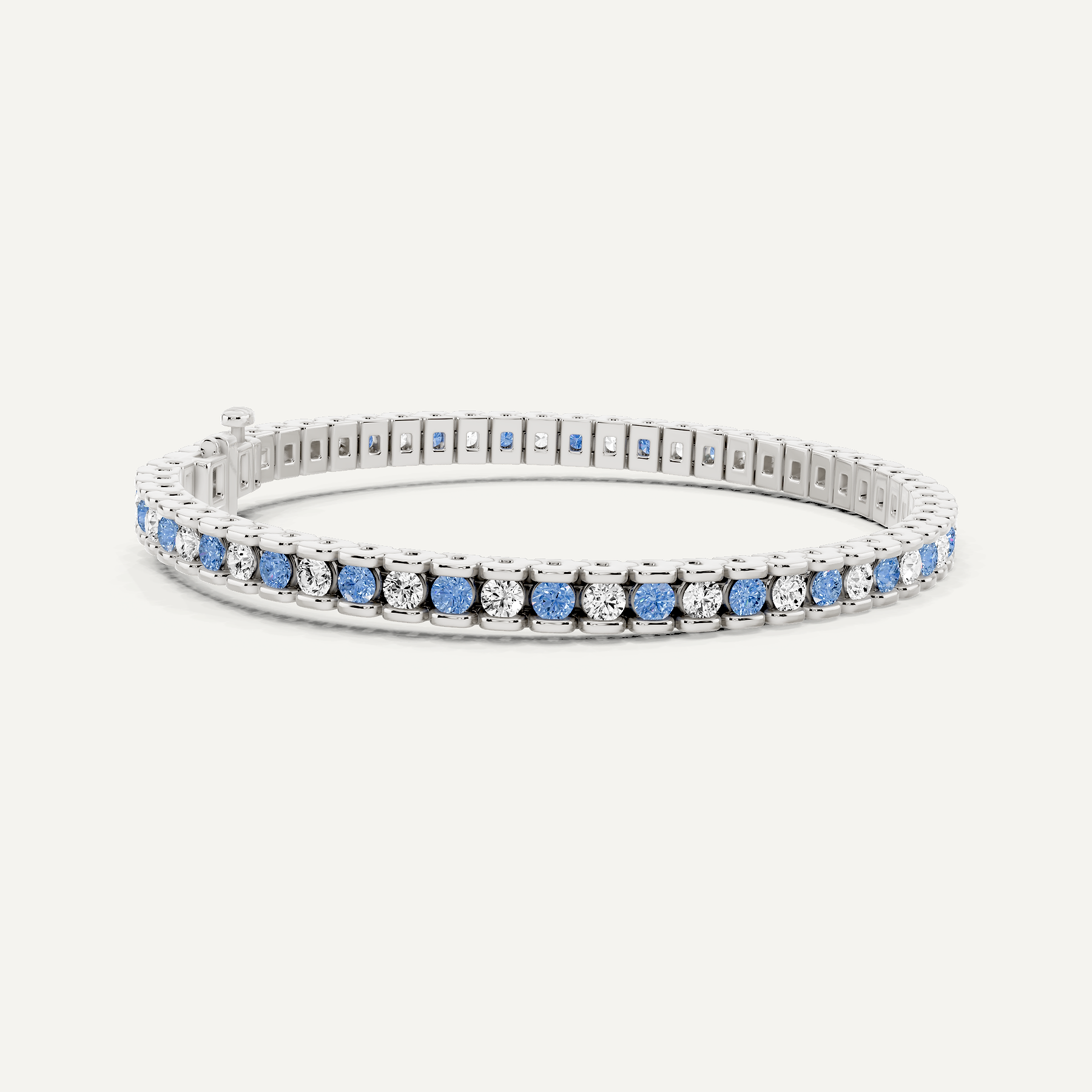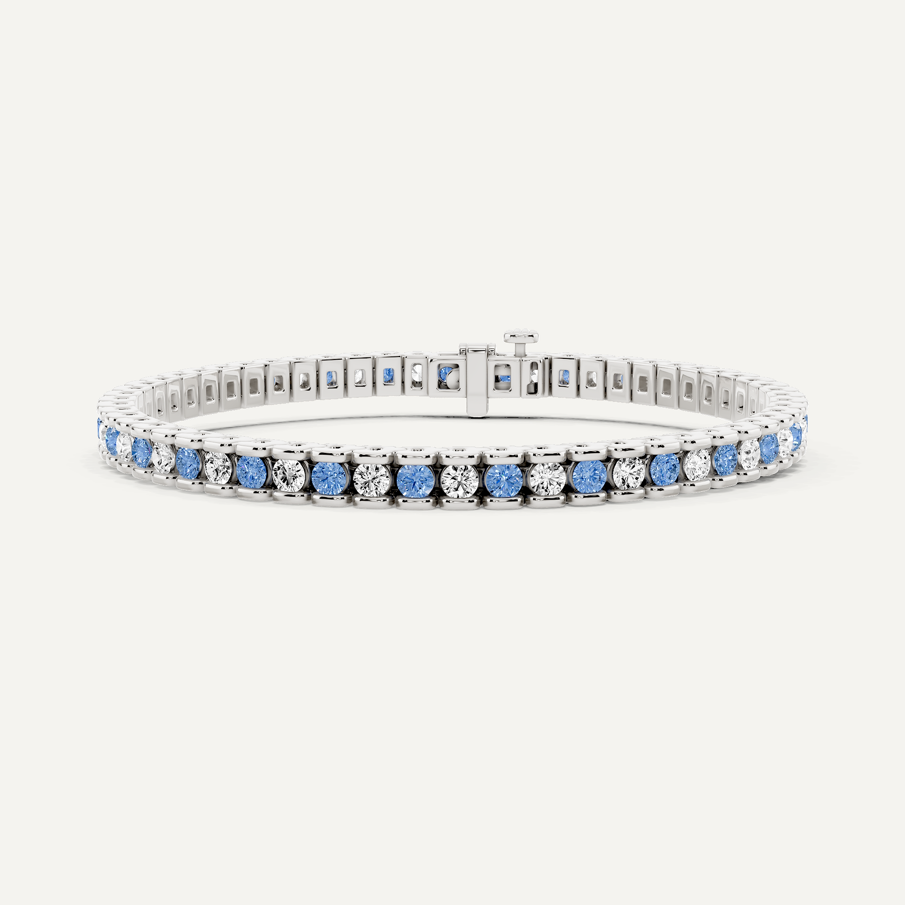 4 ctw Round Diamond & Aquamarine Channel Set Tennis Bracelet in Sterling Silver