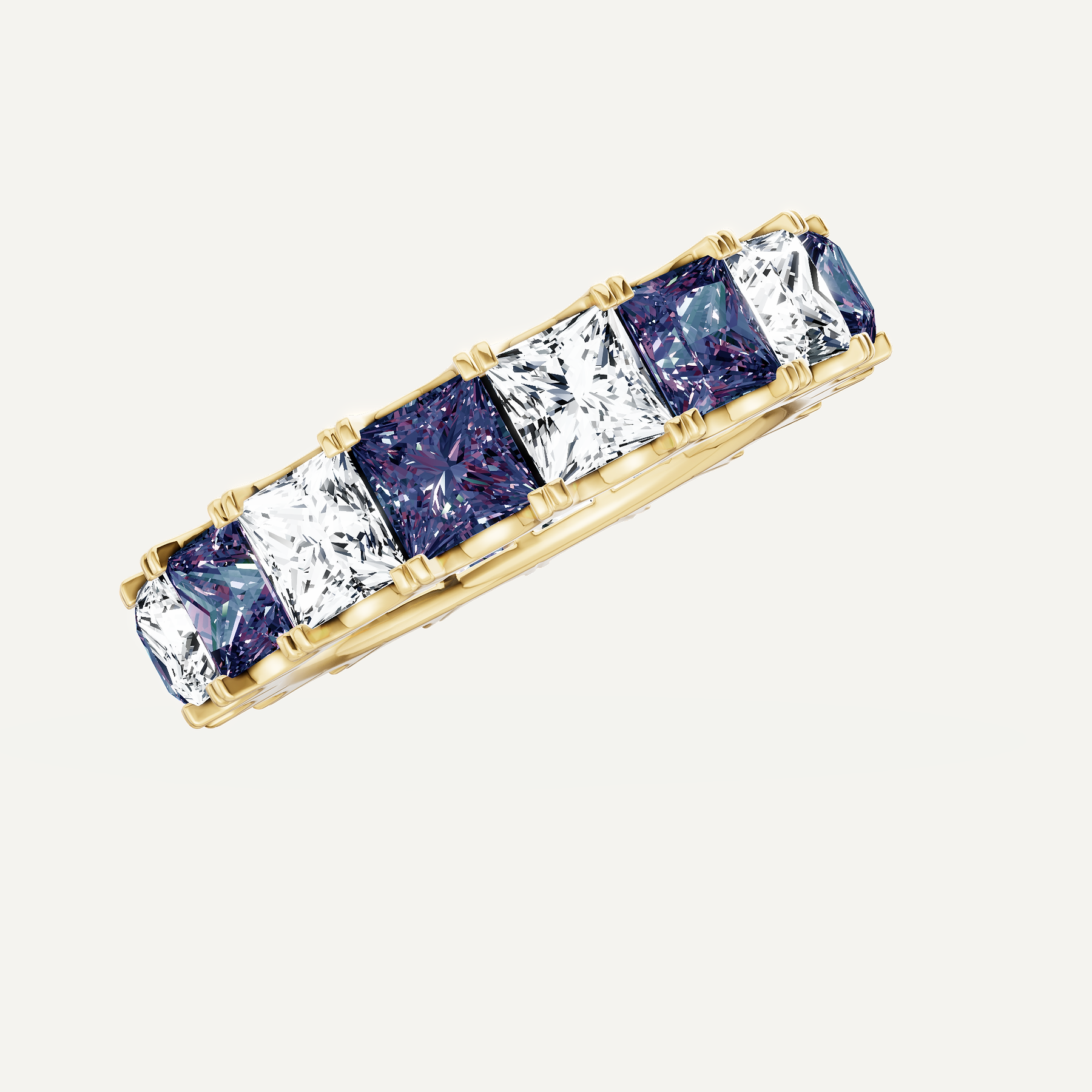 5 ctw Princess Diamond and Princess Created Alexandrite Alternating Eternity Band