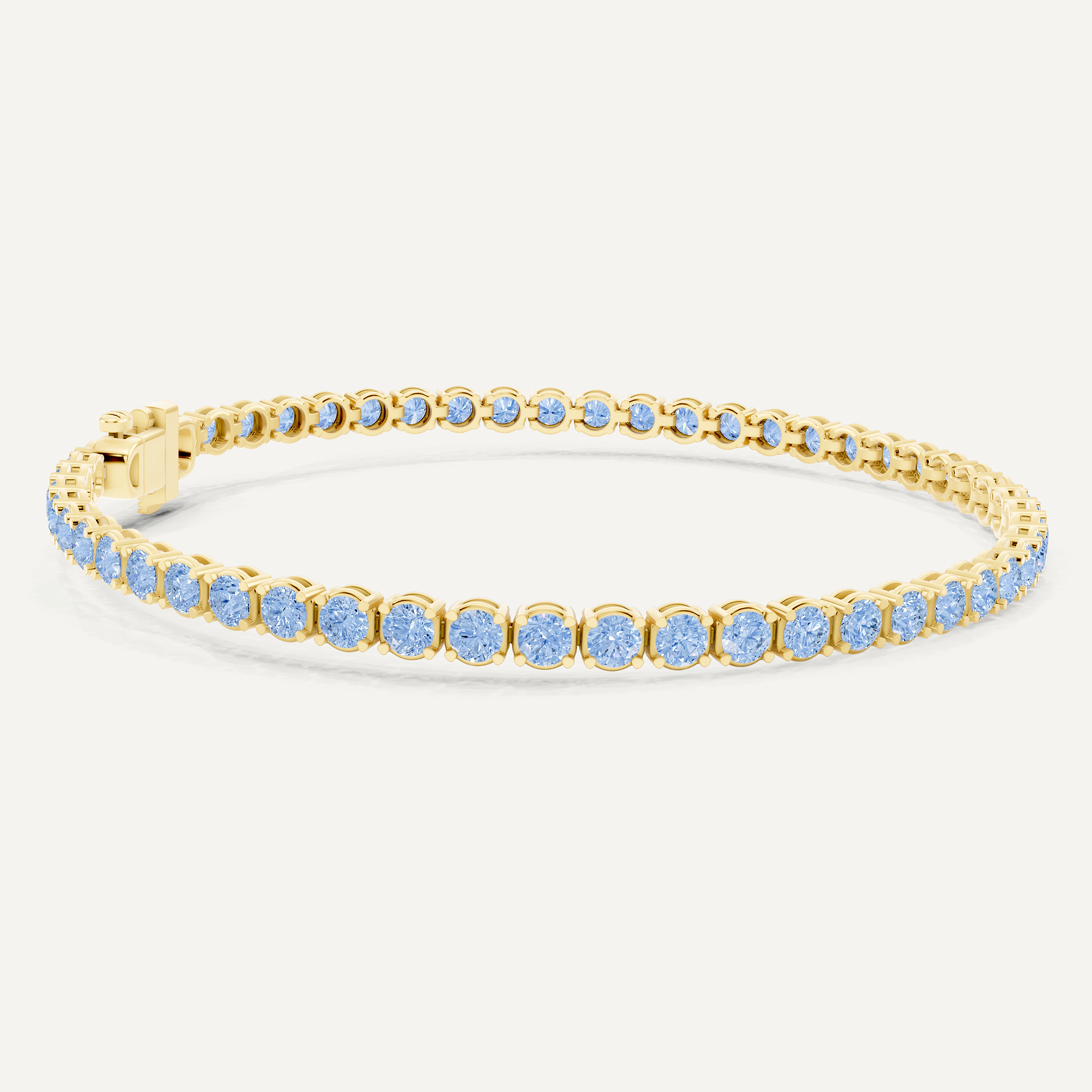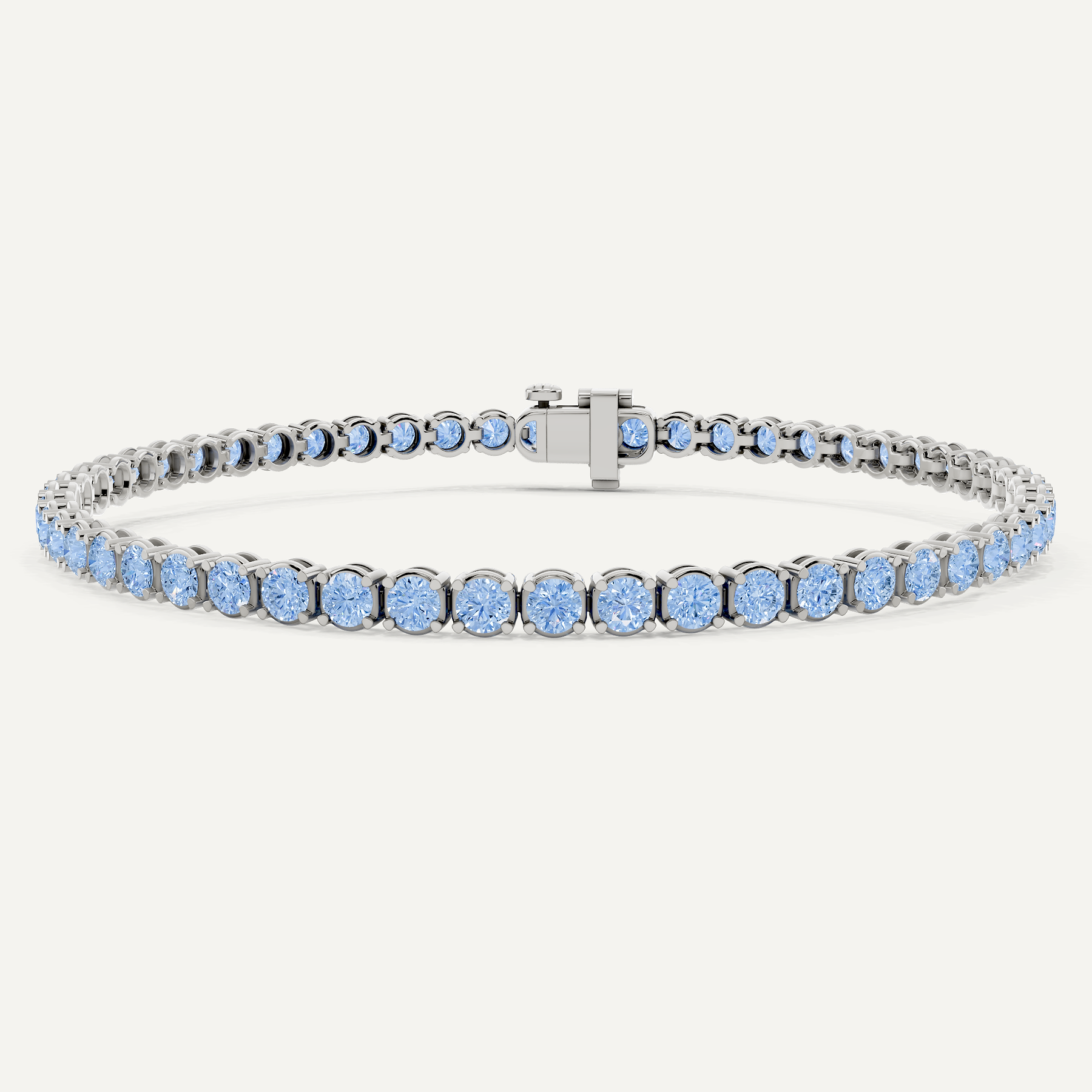 Experience the irresistible appeal of our Round Aquamarine Petite Tennis Bracelet, a harmonious balance of beauty and value. This bracelet radiates classic attraction  while being inexpensive. Elevate your fashion statement with a hint of affordable luxury, as this stunning ornament embodies the spirit of refinement without the premium price. Enjoy the brightness of cheap elegance and make a statement with your individual style.