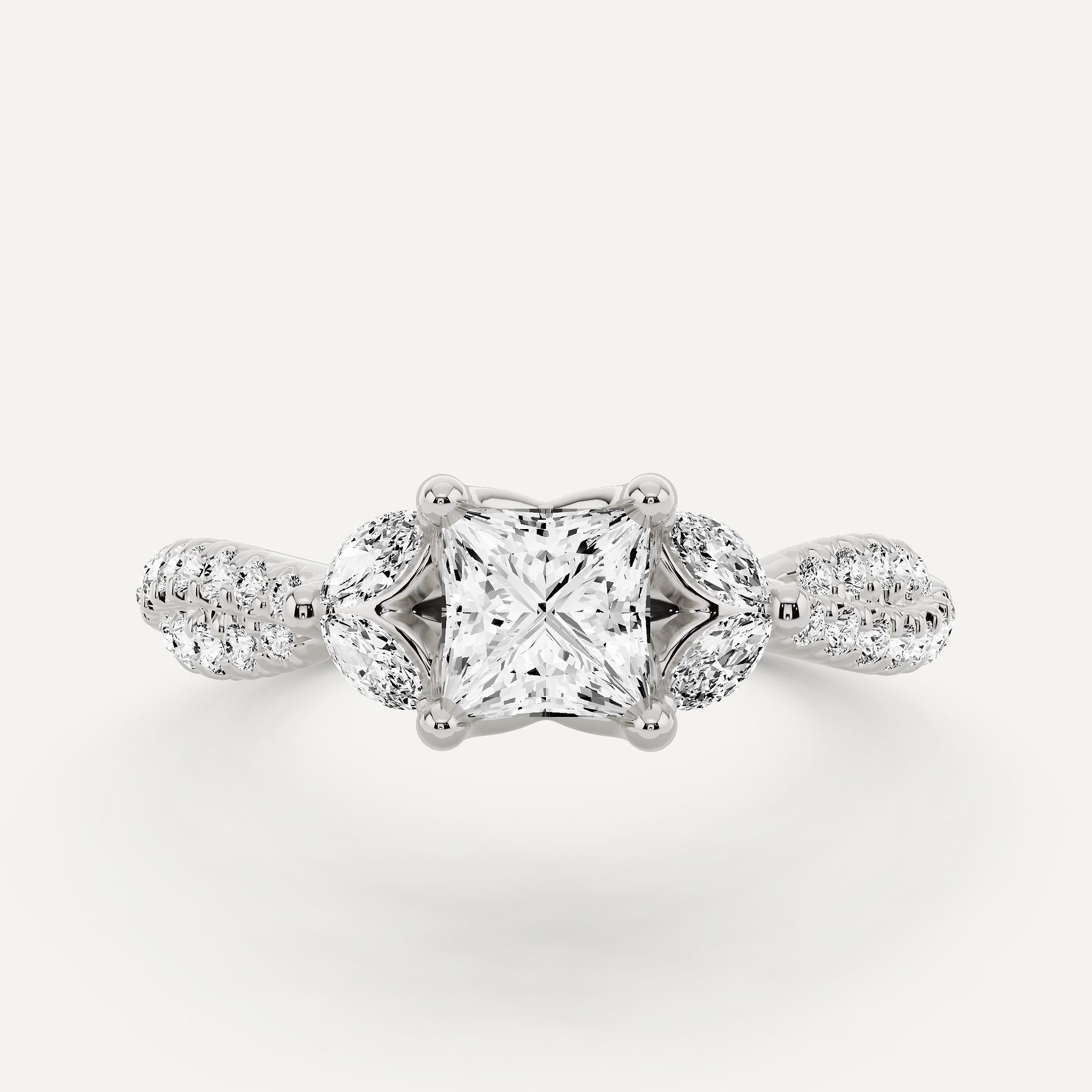 Declare your love with our Princess Diamond Side Stone Engagement Ring. The side stones add brilliance without breaking the bank, making it a perfect choice for the price-conscious couple.