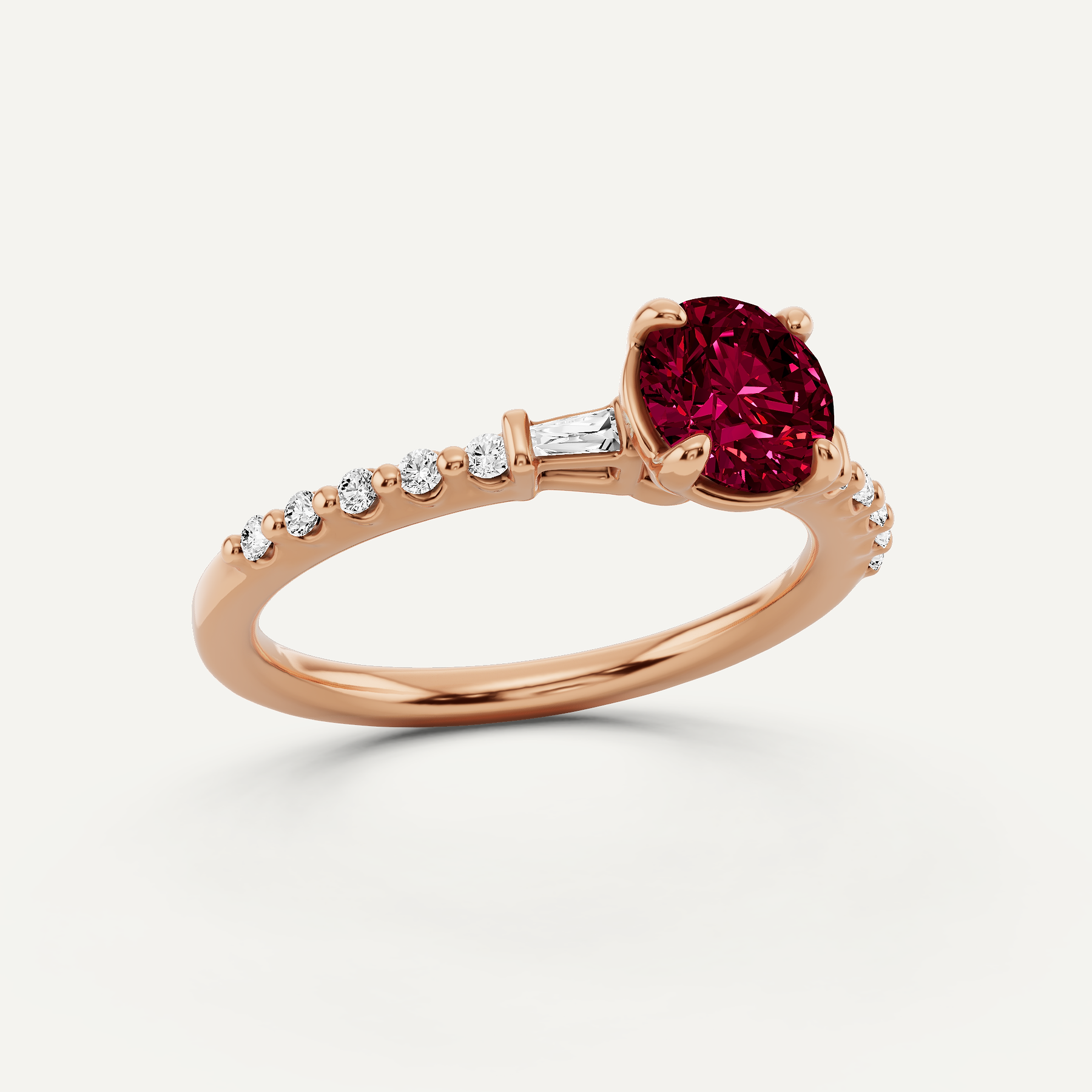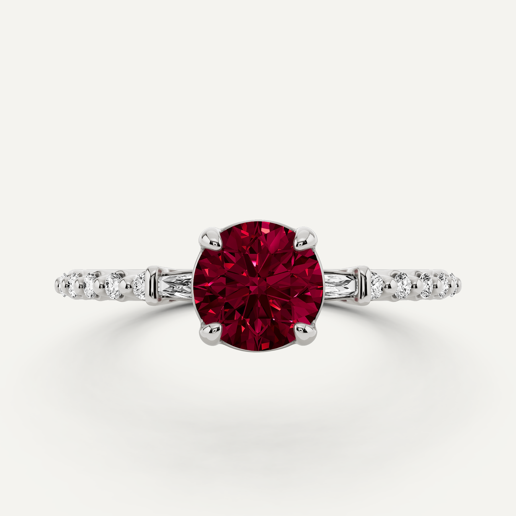 7/8 ctw Round Created Ruby Baguette Sides Side Stone Engagement Ring