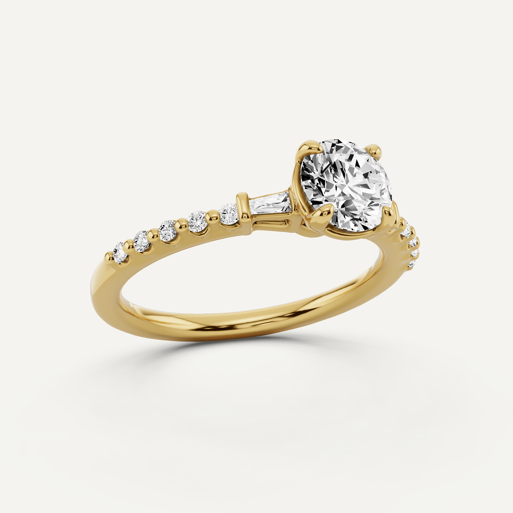 7/8 ctw Round Diamond Baguette Sides Side Stone Engagement Ring