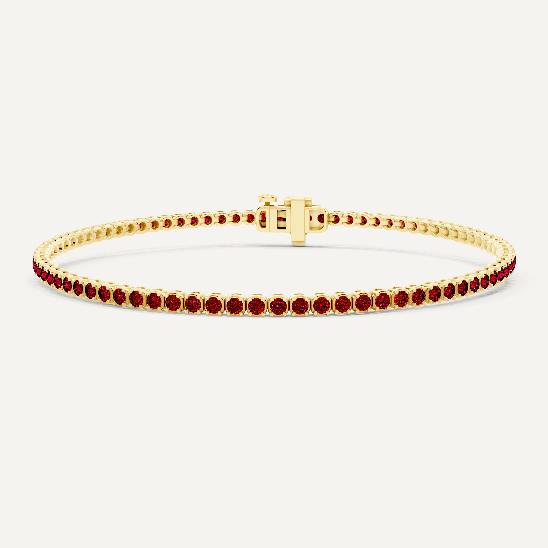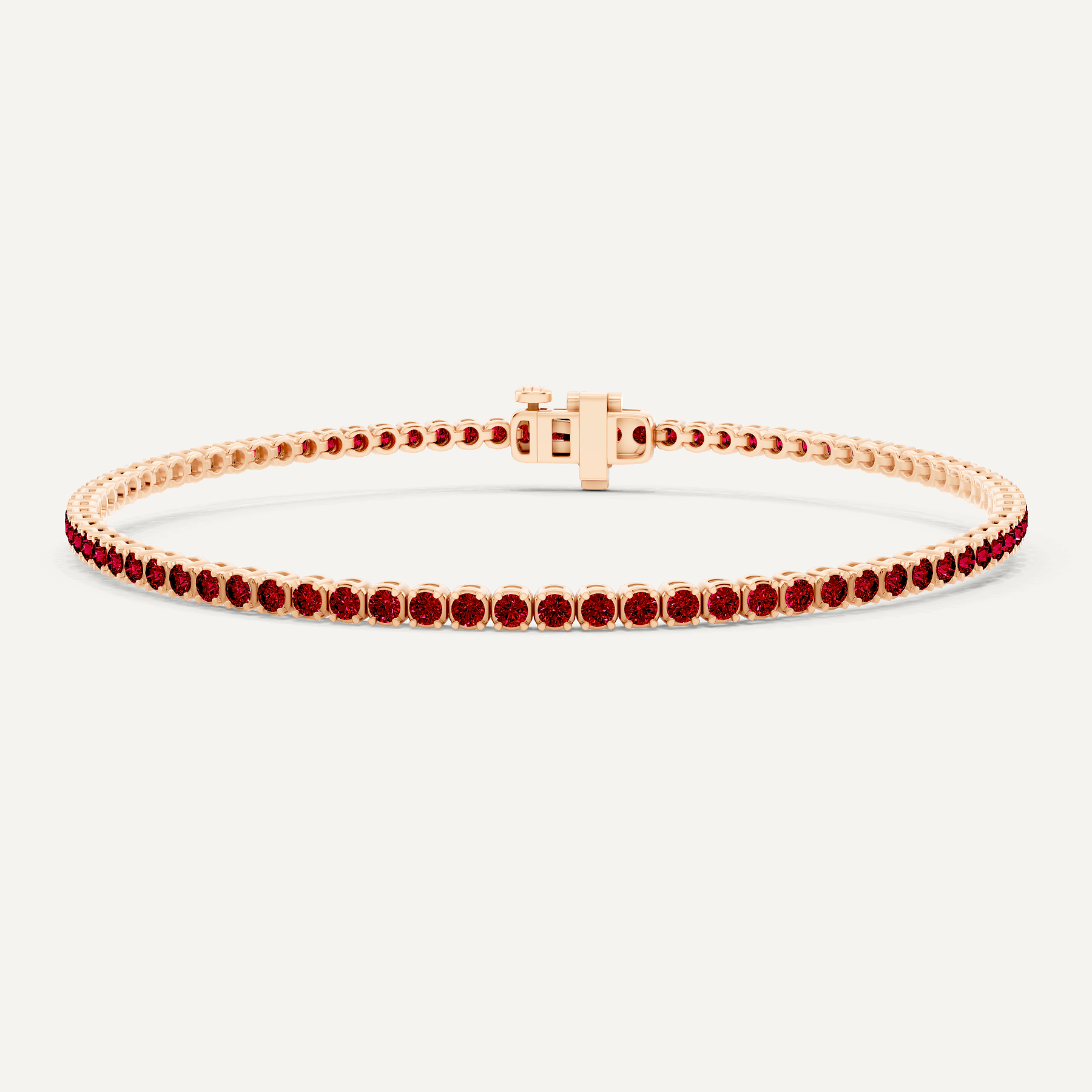 Experience the irresistible appeal of our Round Ruby Petite Tennis Bracelet, a harmonious balance of beauty and value. This bracelet radiates classic attraction  while being inexpensive. Elevate your fashion statement with a hint of affordable luxury, as this stunning ornament embodies the spirit of refinement without the premium price. Enjoy the brightness of cheap elegance and make a statement with your individual style.