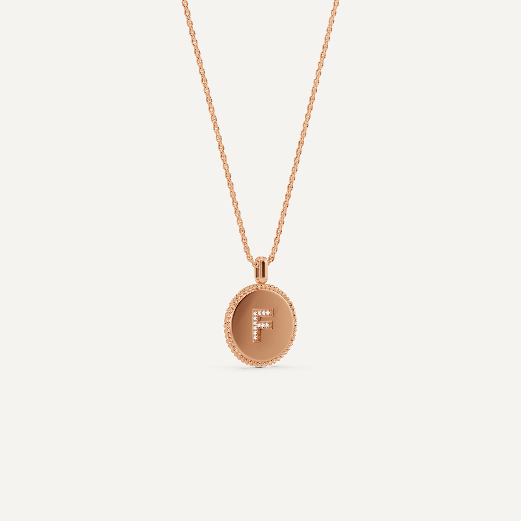 Round Diamond Initial F Pendant with Diamond Accent
